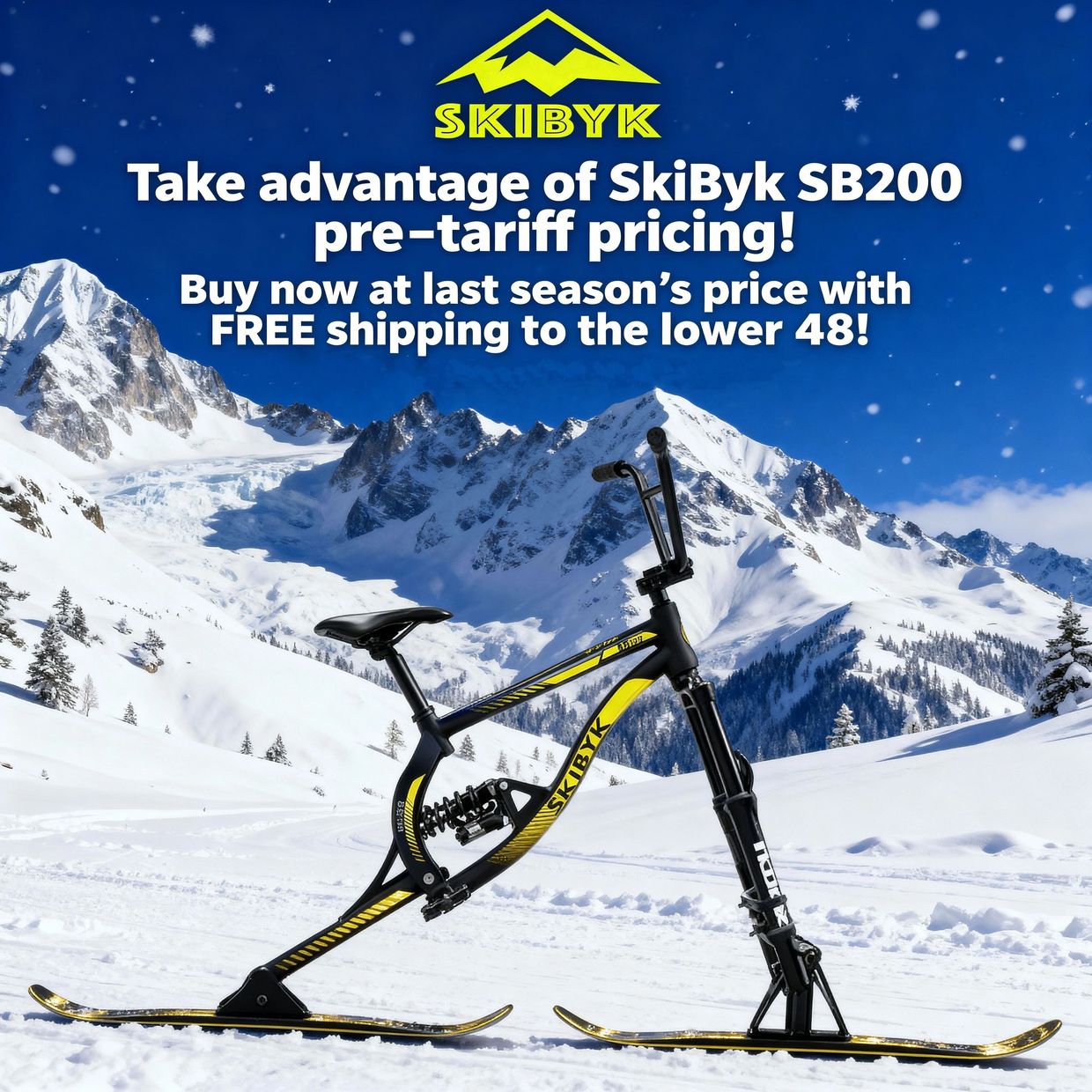 There are 2 simple reasons why the SB100 Ski Bike continues to be the #1 selling SkiBike every year…Price and Performance. The SB100 continues to be the best-priced Full-Suspension Ski Bike sold today. It is the #1 choice of rental operations…why? Because it is an incredibly well-built riding machine. The SB100 delivers on its commitment to performance as well…Our perfect frame geometry…Our standard skis with SkiBike specific sidecut radius…the lateral and torsion flex characteristics of our skis and the full-suspension ride all combine to make a SkiBike that is truly a carving and riding machine….with No Limits.